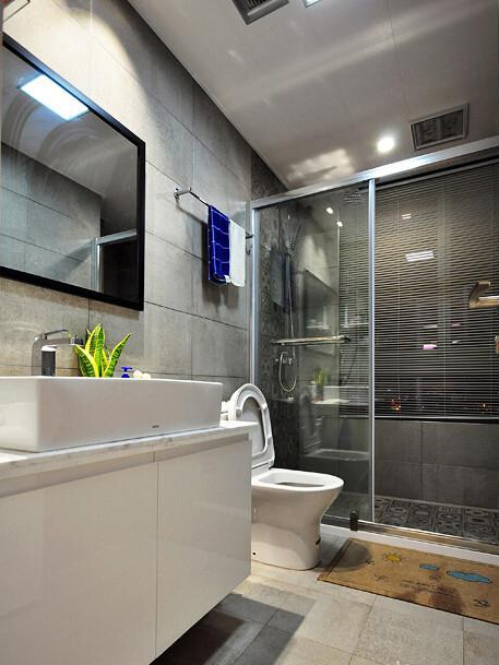 衛生間做了玻璃隔斷 ,門口的防滑墊也很貼心。