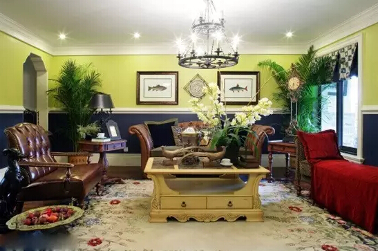 美式鄉村配飾多樣,非常重視生活的自然舒適性,突出格調清婉愜意,外觀雅致休閑。布藝、各種繁復的花卉植物、是美式田園風格中非常重要的運用元素。也常運用天然木、石、藤、竹等材質質樸的紋理。巧于設置室內綠化,創造自然、簡樸、高雅的氛圍。