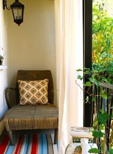 像這樣的窄型小陽臺,在裝修時一定難倒了不少人,陽臺的寬度不到一米,只有一張椅子這么長,容量十分有限。于是我們便從椅子出發(fā),在靠陽臺內(nèi)側(cè)放上適合寬度的大藤椅,在足下鋪上延伸空間大小、活潑空間氛圍的彩色條紋地毯,緊靠外側(cè)再放上幾個裝飾品,為了增添舒適度和隱蔽度,在外側(cè)按上窗簾是十分聰慧的選擇,輕松早就一款舒適型小陽臺。
