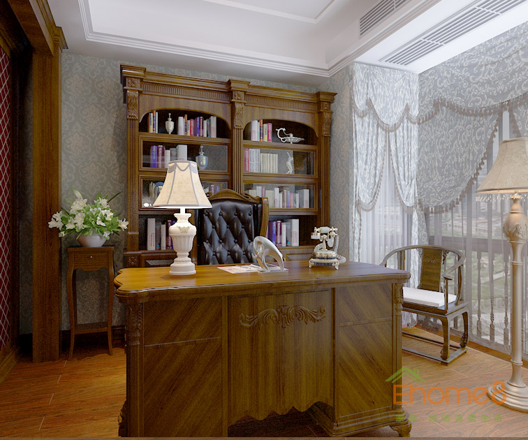 中式紅木裝修書房效果圖