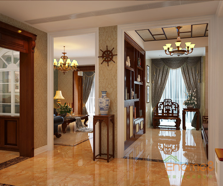 彩虹城三房一廳113㎡茶幾休息區田園風格裝修效果圖