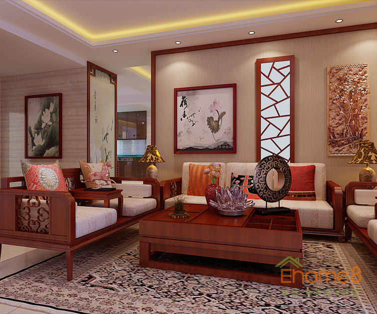彩虹城東郡72平米中式餐廳客廳裝修效果圖