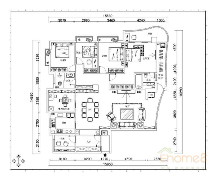 和諧家園140㎡四房一廳法式風格裝修效果圖