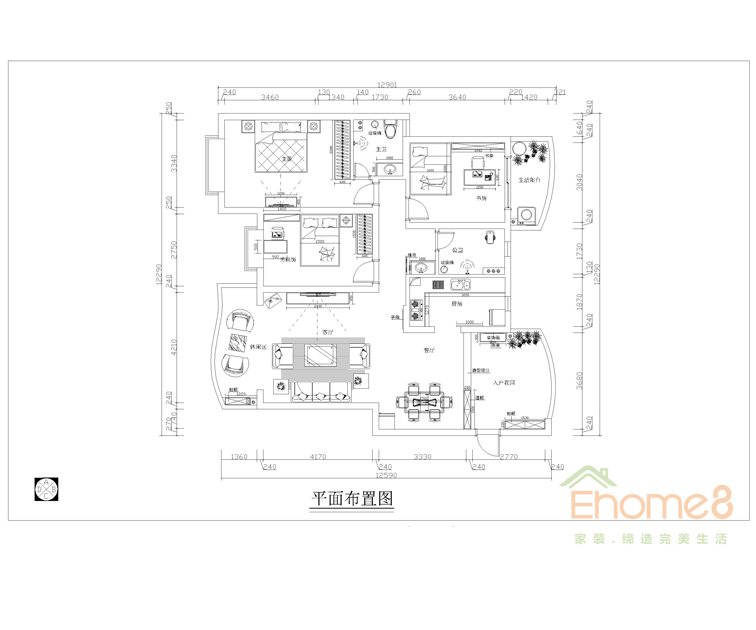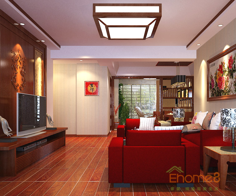 和諧家園98㎡三房一廳中式田園風(fēng)格裝修效果圖