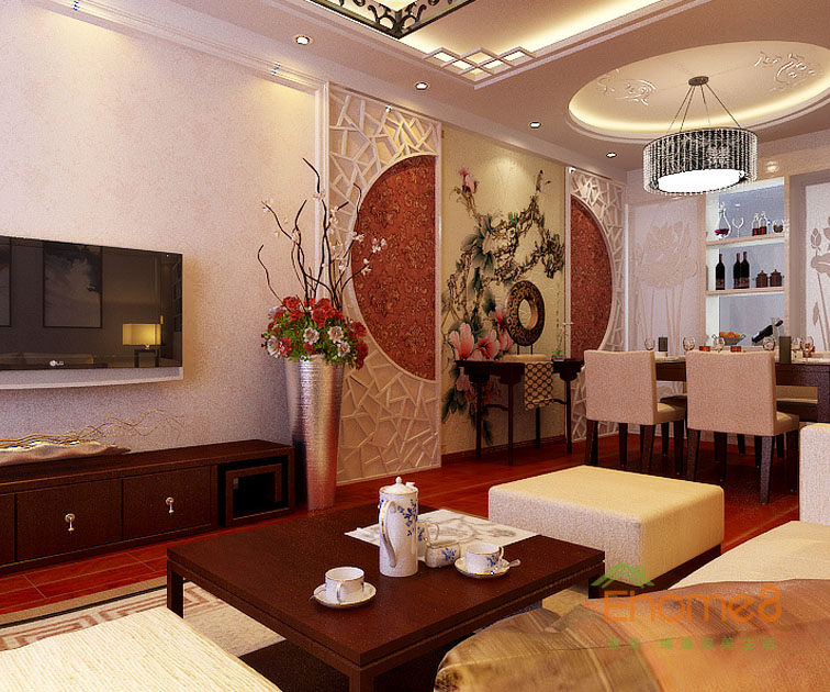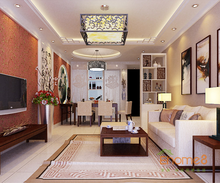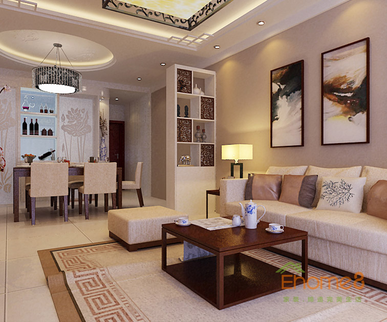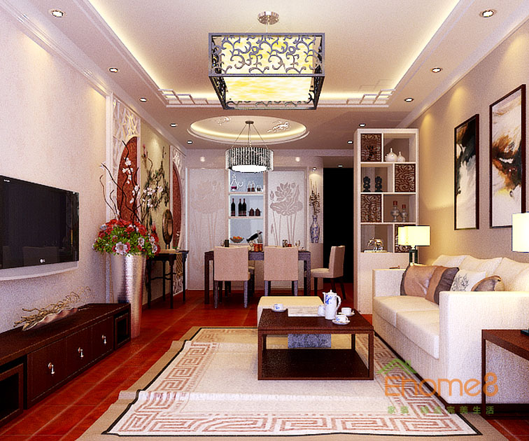 在水一方78㎡兩房一廳中式中國風(fēng)裝修效果圖
