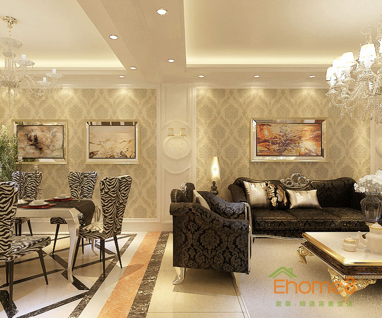 兆安現代城98㎡三房一廳歐式風格裝修效果圖