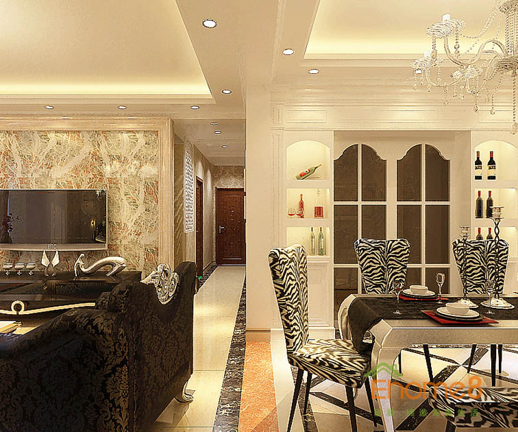 ?兆安現代城98㎡三房一廳歐式風格裝修效果圖