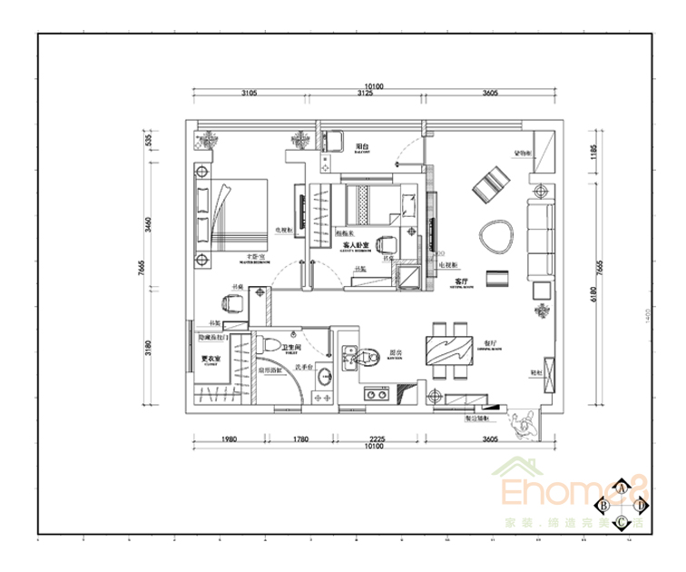 盛世中華-65㎡兩房一廳-創(chuàng)意裝修效果圖