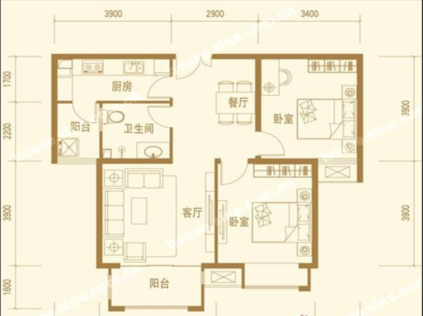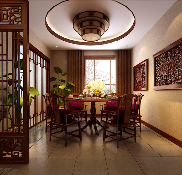 山語城三房一廳90㎡中式原木風格裝修效果圖