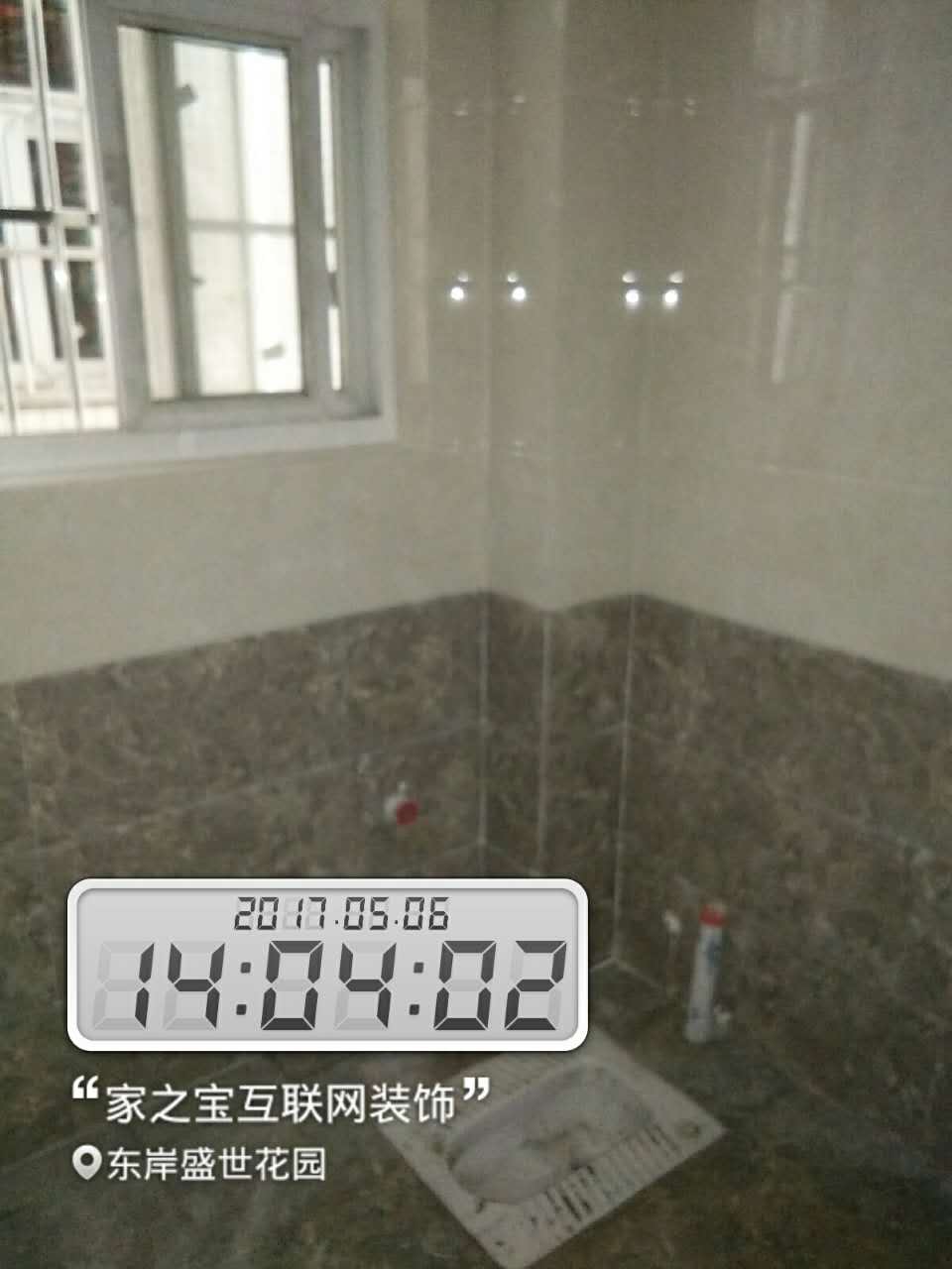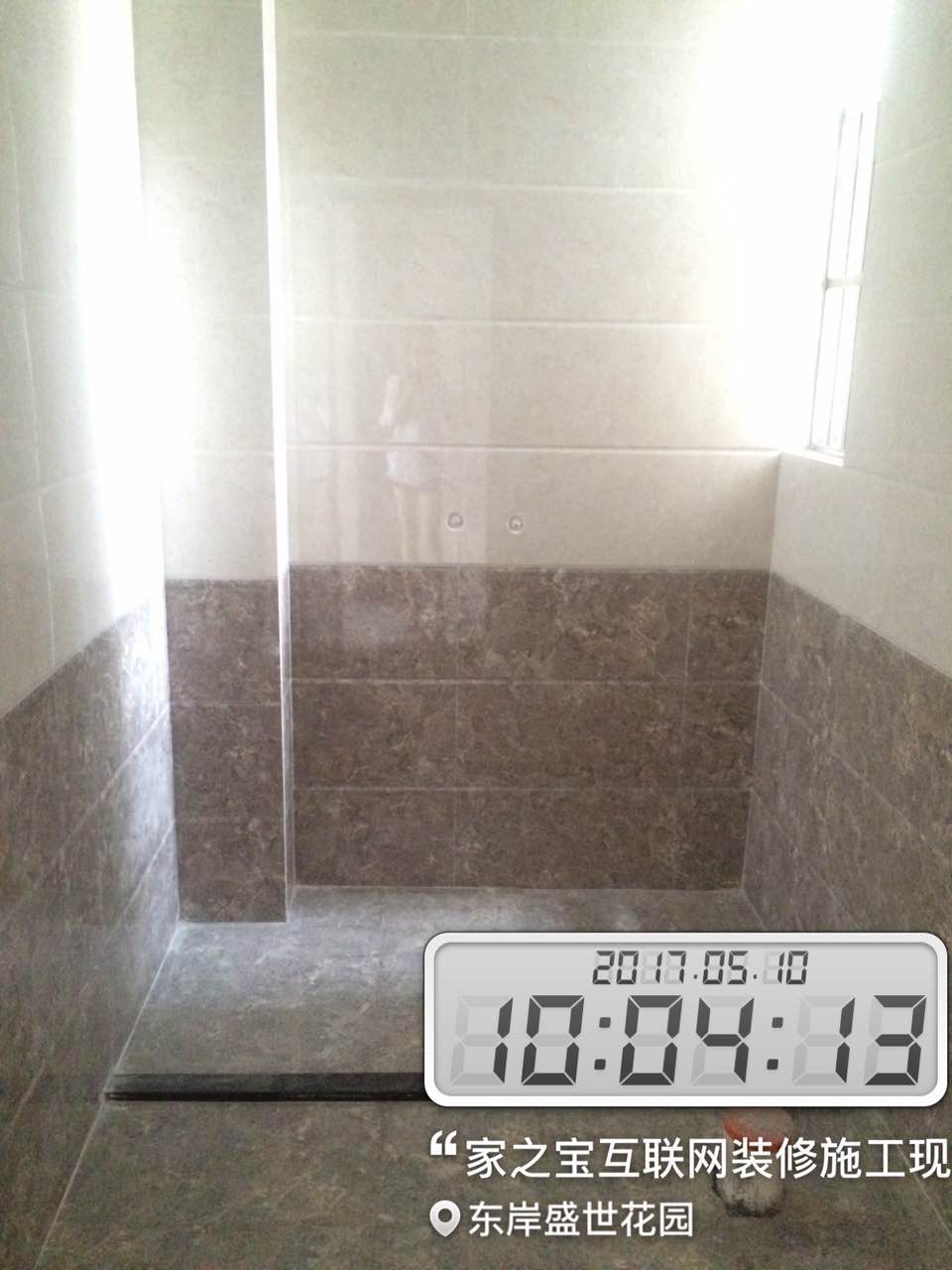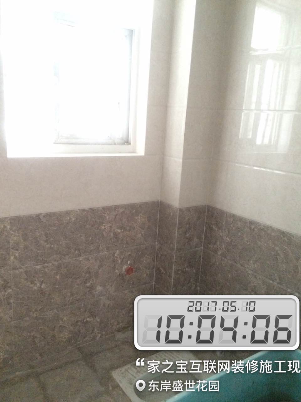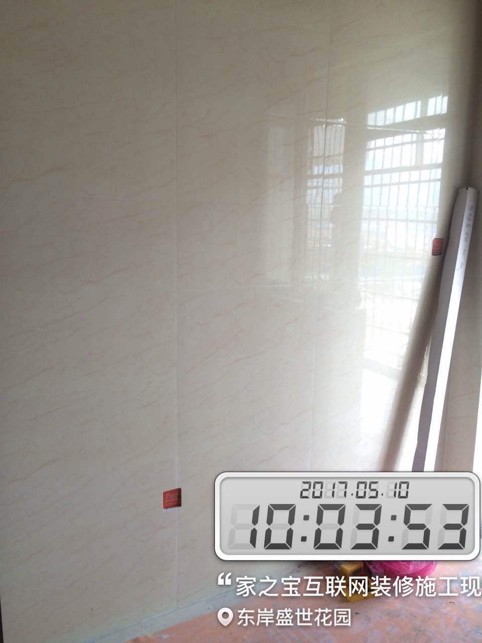 墻磚鋪貼,使用水平儀投射水平線,陽角處采用磨邊45°碰角工藝。