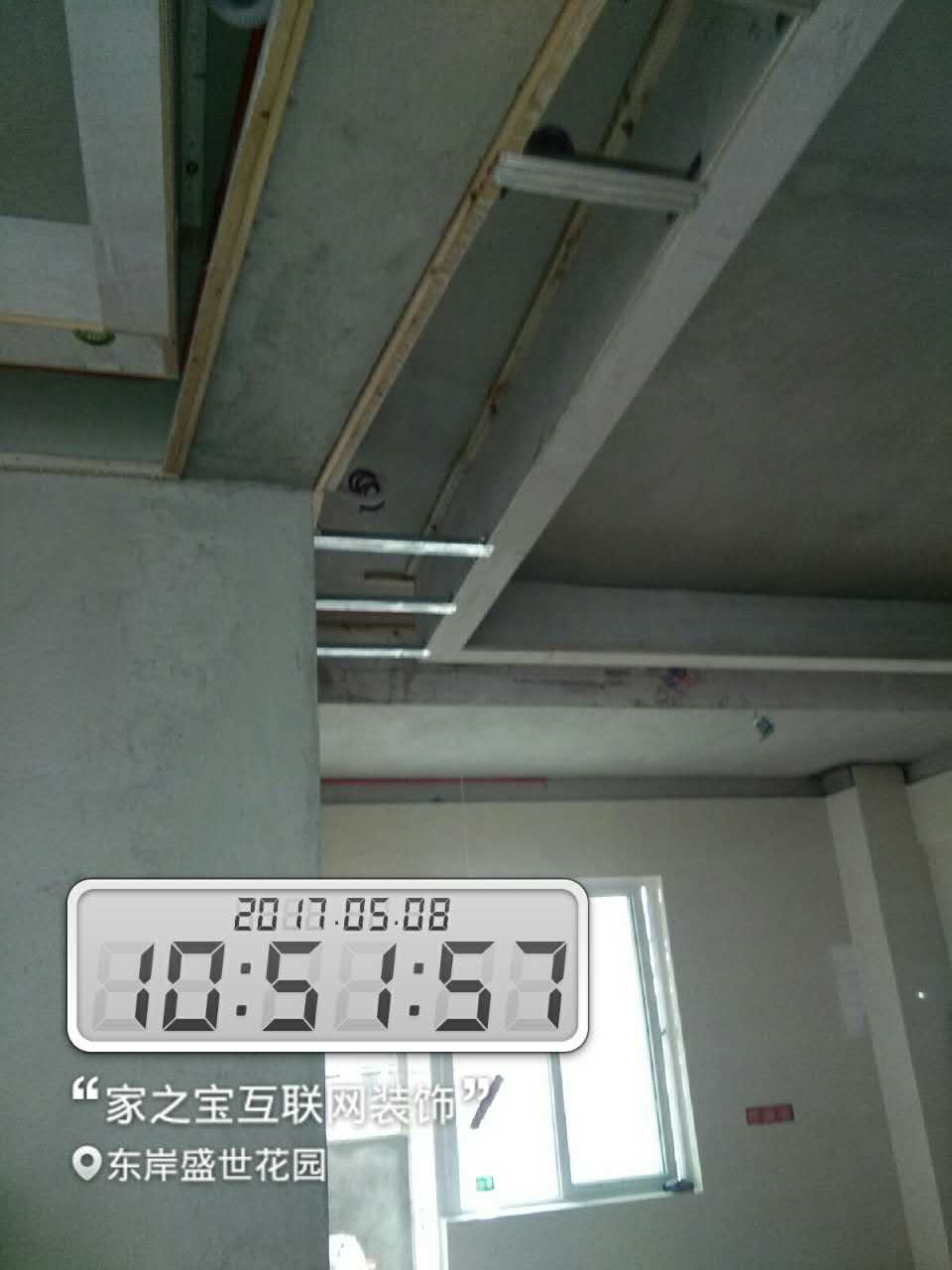 采用輕鋼龍骨搭建吊頂框架,吊桿50公分,主骨40公分,副骨30公分
