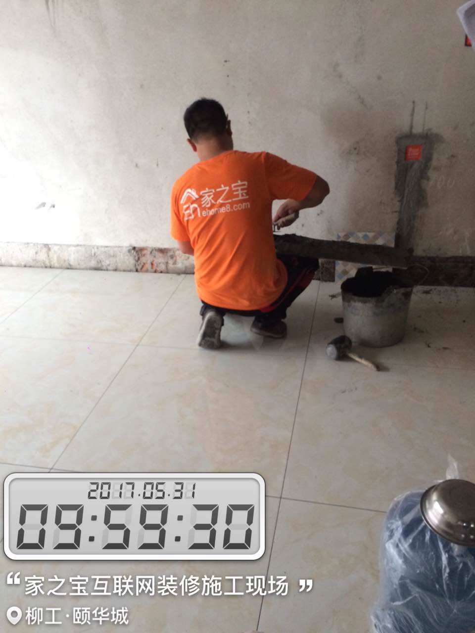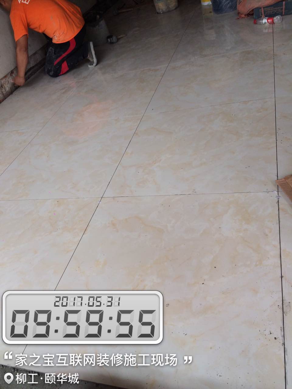 瓦工施工,平整對縫,鋪貼完畢即刻進行成品保護,鋪好地膜。
